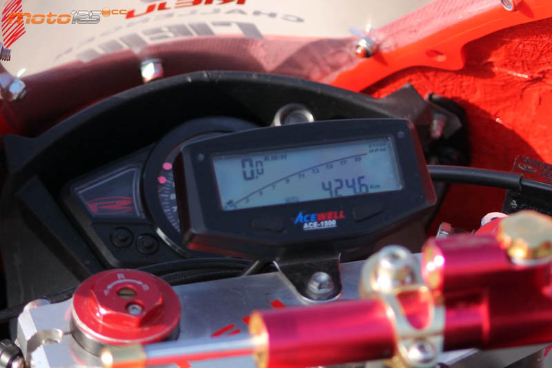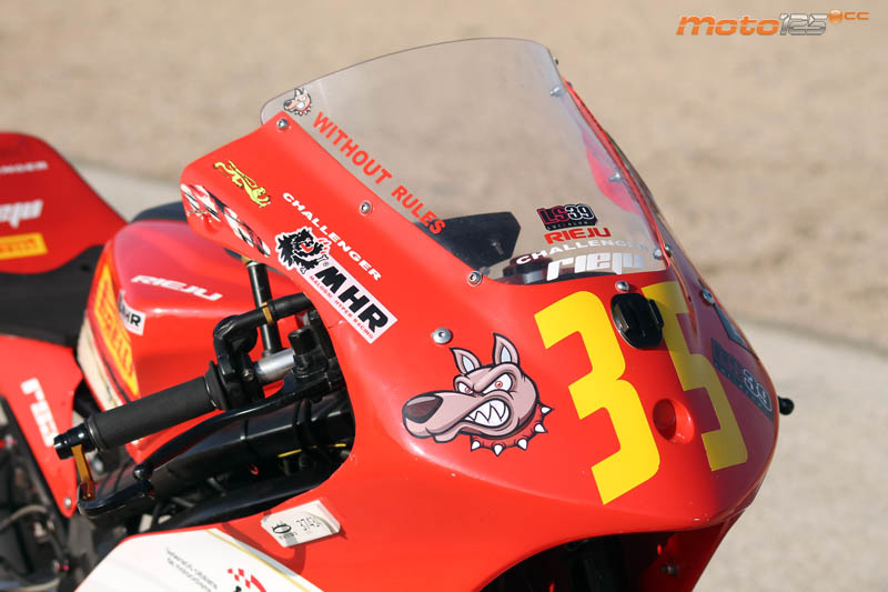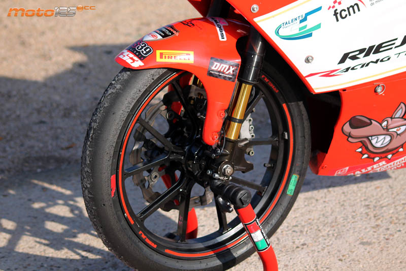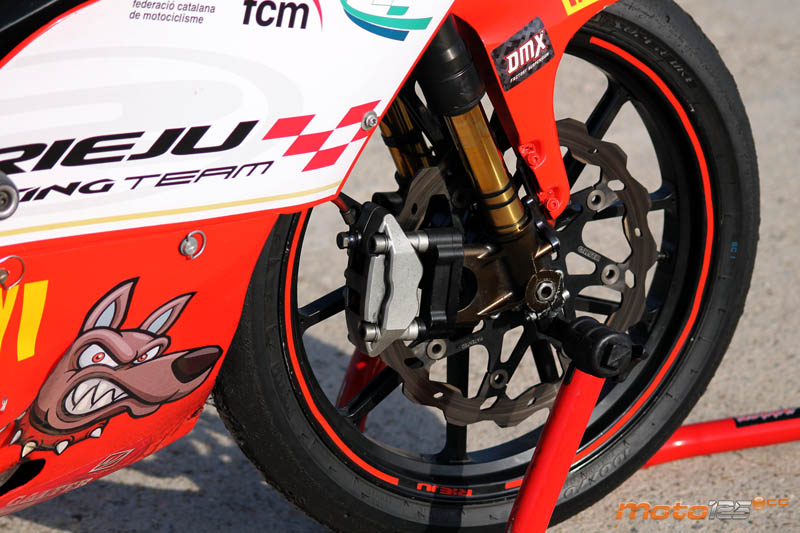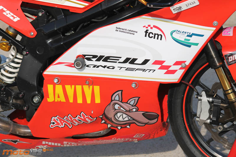 Según nos cuenta Jesús Navarro de Rieju, se podía aligerar todavía más, pero ya suponía emplear materiales más exclusivos y ligeros que terminarían encareciendo el precio. En este sentido la moto se ofrece a un precio de 6.655 € (IVA incluido), unos 2.400 € más cara que la moto de serie y que, como veremos, justifica sobradamente todas las modificaciones que se han hecho. Lo que no se contempla es entregar la documentación de la moto para que, después del Campeonato y con el carnet A1 en la cartera, el joven piloto pueda emplearla como moto de serie legal, obviamente reponiendo la mayor parte de los elementos de la preparación.
