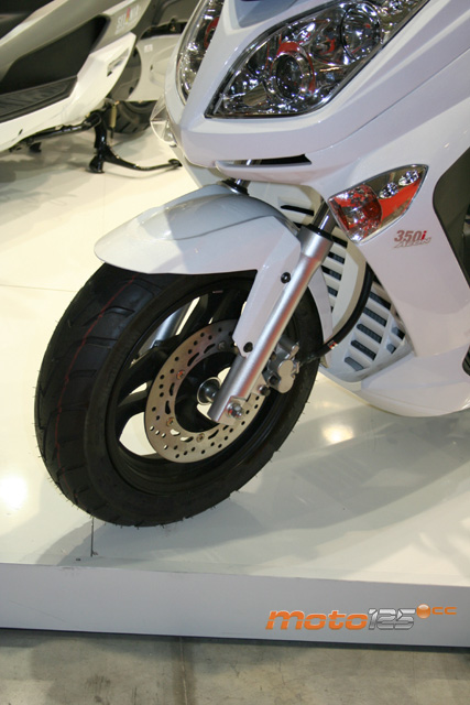 Por fin, se declaran datos para este modelo, que fue dado a conocer justo hace un año en este mismo Salón. El motor –también de fabricación propia- está refrigerado por agua, con culata de 4 válvulas, alimentado por un carburador Keihin de 30 mm, cuenta con pedal de arranque y rinde 14,3 CV, lo que demuestra estar en muy buena forma. En cuanto a la parte ciclo, lo detienen sendos discos de 256 mm de diámetro en ambas ruedas de 14 pulgadas (obviamente con diferentes secciones de neumáticos). A las cilindradas de 125 y 350 cc ya conocidas se suma ahora una de 200 cc alimentada por inyección construída sobre la base del 125 cc. |
