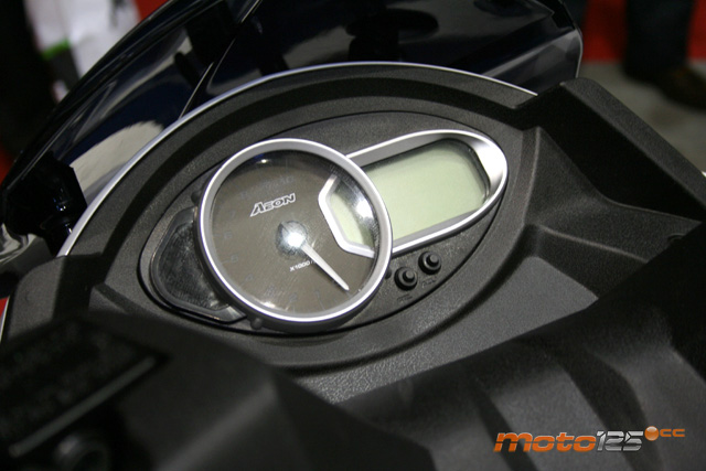 Con esta nueva línea de scooters, Aeon se reestrena en el segmento de las dos ruedas que había dejado hace tiempo, después de su especialización en el de los quads-ATV. En esta nueva gama, el modelo Elite representa al sofisticado scooter de Gran Turismo. Al emplear la misma base del 350, este 125 puede presumir de grandes dimensiones, con una doble óptica de faro que, a su vez, desdobla en otras dos para las luces de carretera y cruce, y que, para más señas, es la misma que la que emplea el Quadro 3D. Su estilo es tirando a deportivo, ya que el parabrisas ha sido reducido a la mínima expresión, aunque para los que tengan gustos más tradicionales, Aeon ofrecerá como accesorio un parabrisas alto y transparente, además de un práctico baúl trasero de gran capacidad. |