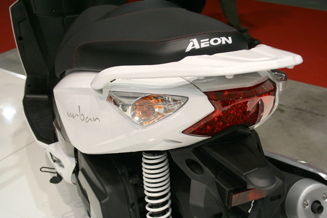 A la vista está que el Urban tiene aire de familia y guarda ciertas similitudes con su hermano Elite, pero lo que confunde un poco es que se trate de un scooter “rueda alta”, ya que lo habitual es encontrarse con formas más delgadas y estilizadas. Posiblemente, sea una forma de captar nuevos usuarios ofreciendo estilo GT, pero con la estabilidad y seguridad que proporciona la rueda de 16 pulgadas. Por cierto, la rueda de 16 pulgadas delantera se complementa en el eje trasero con una de 15 para obtener una mayor capacidad de carga, ya que Aeon afirma que, bajo su asiento –con apertura centralizada desde la cerradura de contacto-, se dará cobijo a dos cascos (sin indicar si estos son integrales o abiertos).