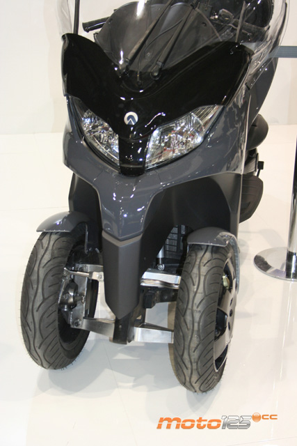 Otra marca que se apunta a los scooters de tres ruedas (dos ruedas delanteras), pero no podía ser de otro modo que dotándole de una cabina, como desde siempre nos tiene acostumbrados Adiva. De hecho, es un proyecto que se viene presentando desde hace varios años en este Salón, pero que parece que al final verá la luz muy pronto, a la vista de los excelentes acabados que mostraba la unidad expuesta (más propios de una unidad preserie) y de que se comentaba que su precio rondará los 7.000 euros: muchos competidores para el MP3, sobre todo en Francia, donde concentra el mayor volumen de ventas.