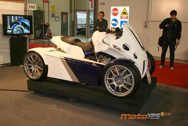 GG Technik es una compañía suiza regentada por Walter Grüter que en 1994 decidió que era hora de probar construyendo algo propio para lo cual comercializó un combinado moto-sidecar muy original del que se llegaron a fabricar más de 30 unidades (completamente artesanales) en el mercado europeo y japonés. Desde entonces ha probado con diferentes inventos basados en mecánicas de Moto Guzzi y BMW. Lo que vimos en su stand de Milán eran sus dos últimas creaciones con 3 ó 4 ruedas.