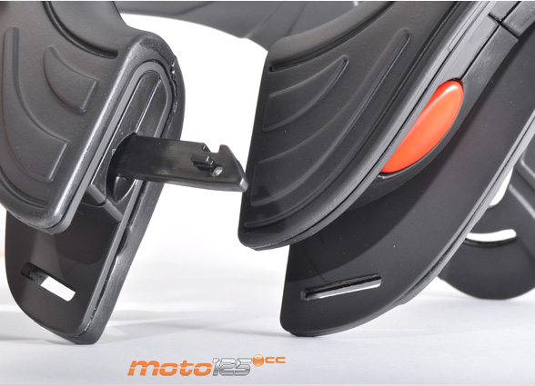 El Moveo Brace es un dispositivo de seguridad especialmente diseñado para moto (o bici), tanto de asfalto como de motocross. Conjuntamente con el casco, está pensado para reducir los daños en el cuello, tanto por giros bruscos o excesivos como por fuerzas transferidas en un accidente.