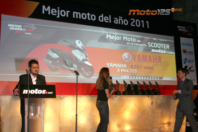 En la primera edición de los premios Mejor Moto del Año que han realizado nuestros compañeros de Motos.Net, ha salido elegida, por votación popular, la Yamaha X-Max 125 como scooter entre la totalidad de los modelos de hasta 125 cc que se comercializaron durante el pasado 2010. El proceso de votación de Mejor Moto del Año comenzó en julio del año pasado, a través de una minisite exclusiva, reduciéndose la selección a los tres modelos más votados de las 12 categorías a partir de septiembre. En total, se han contabilizado más de 130.000 votos.