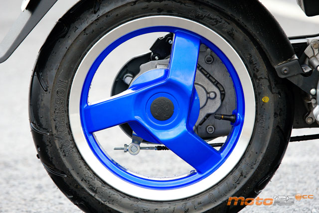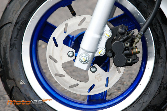 La dotación de frenos es la misma del Vivacity 50, esto es, un disco delantero de 200 mm (el mismo también del 125) y un tambor posterior de 110 mm (130 en el 125). El freno delantero hace un buen papel, sin embargo al posterior le falta un poco de clavada final para detenerse en menos espacio. Tal vez hubiera sido mejor confiar la frenada trasera a un segundo disco.