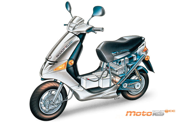 En 1996, Peugeot fue pionera en ofrecer un scooter eléctrico con el Scoot’Elec. Aquel modelo estaba basado en el scooter urbano Zenith, al que se le había añadido un travesaño central muy abultado para esconder sus tres grandes baterías de Niquel-Cadmio (39 kilos frente a los 16 de las baterías de Ión-Litio del e-Vivacity) que alimentaban un motor eléctrico de 1,5 kW (el doble en el eléctrico actual). El Scoot’Elec coincidía con el e-Vivacity en emplear un hueco Jet-In en el escudo frontal, y poco más, ya que las ruedas eran de 10 pulgadas con sendos frenos de tambor, instrumentación analógica con una especie de teclado para introducir un código de usuario que permitía su puesta en marcha, y, bajo el asiento, toda la electrónica de potencia y el enchufe para la recarga (nada de espacio de carga). |