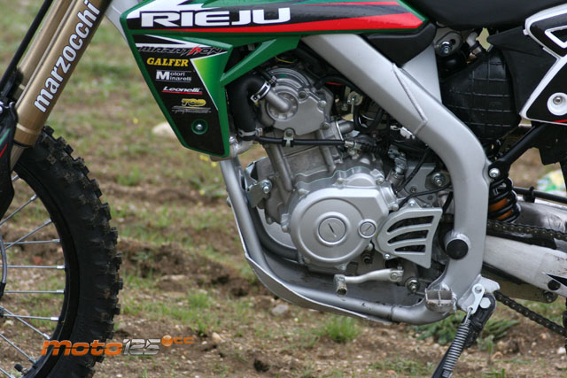 Rieju duplica la refrigeración del motor, añadiendo un segundo semi-radiador por el lado izquierdo, y equipa un escape LeoVince de competición en aluminio (más ligero) que prescinde del catalizador, con el fin de desahogar la mecánica. Como remate final para proteger la mecánica, un protector de cárter en duraluminio.