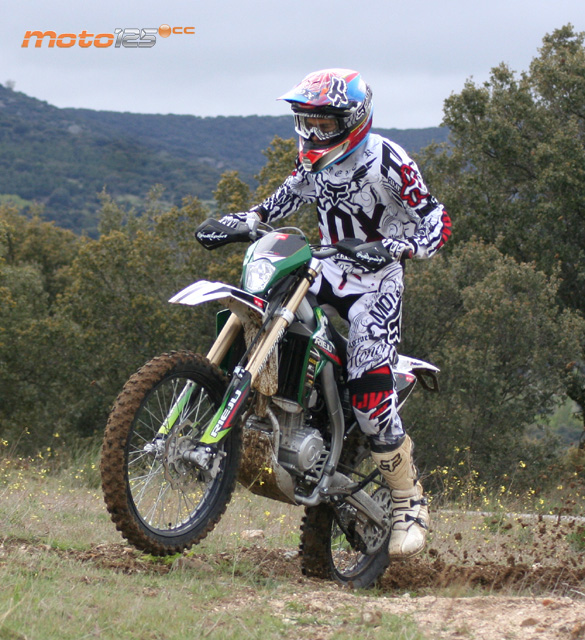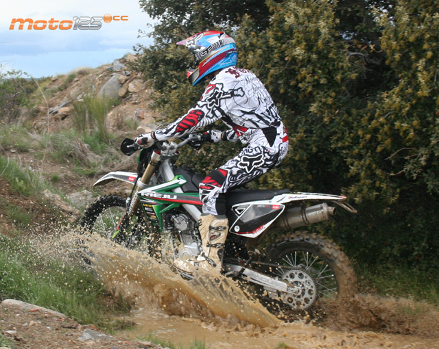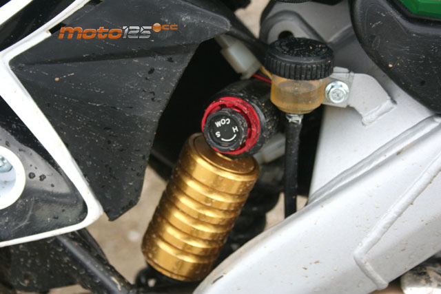 Referente a los frenos, se cambia todo. El delantero puede parecer que sale perdiendo con una reducción del diámetro del disco desde los 300 a los 250 mm y despreciando la pinza de anclaje radial por una convencional, pero lo cierto es que la pinza es ahora flotante (presiona por igual en ambas caras del disco), el tacto es más dosificable y potente, y no le afecta el agua ni el barro; sin duda mucho mejor. En cambio, el disco trasero aumenta de los 200 a 220 mm. Y para dar mejores sensaciones al piloto: estriberas sobredimensionadas y un manillar de aluminio con conicidad variable –sin necesidad de recurrir a la barra de refuerzo– y con regulación en las bridas.