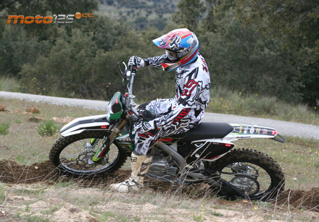 Los cambios se notan. En nuestra toma de contacto pudimos contar con Marcelo López, joven piloto de enduro que destaca en la cilindrada de 125 cc en las competiciones de la zona centro. Obviamente y puestos a elegir, Marcelo prefiere los 125 cc de un motor 2T que el de un 4T, por muy bien preparado que esté como el de esta Rieju. Y es que, en cilindradas pequeñas, los “dos tiempos” cuentan con convincentes argumentos para seguir dando guerra en el mundo de la competición (de ahí que, en Italia, se hagan carreras exclusivas para los 4T). No obstante, Marcelo aprecia el buen trabajo que ha hecho Rieju en las suspensiones de esta Marathon tan especial, y en el funcionamiento de su parte ciclo con unos potentes y dosificables frenos.