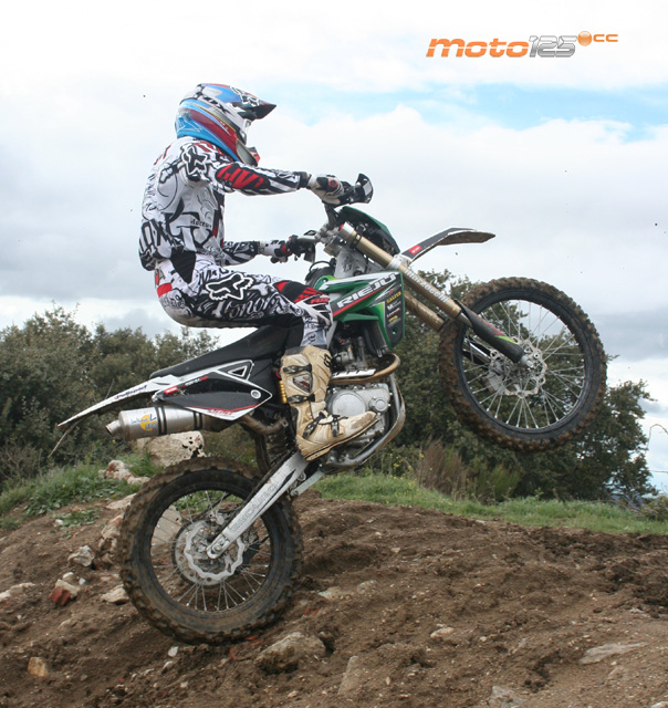 Pero lo más importante es que Rieju ha exprimido todo el jugo de los 125 cc que cubica el motor Minarelli. El trabajo interior que se ha hecho comienza por montar un pistón que proporciona una mayor compresión (la cabeza se ha sobreelevado para no tener que rebajar la culata) y utilizar un nuevo encendido, cuya característica más importante se encuentra en que emplea dos curvas diferentes (más “bruta” o más suave para terrenos resbaladizos). Para cambiar de curva, basta con seleccionar la posición de un conmutador que se encuentra por el lado derecho de la moto, debajo del depósito. Y para completar los cambios mecánicos,