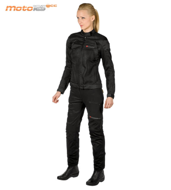 ***Air Frame Lady (Mujer)*199,00 euros.Comodidad duradera, aunque varíen las condiciones meteorológicas, combinada con una óptima ventilación es una situación difícil de obtener en un prenda ventilada con tallaje específico femenino, ya que al disminuir la temperatura se percibe inmediatamente sensación de frío. Air-Frame combina la ventilación obtenida mediante amplias zonas de red con la protección contra el aire ofrecida por un cortaviento desmontable y muy ligero. Provista de amplias regulaciones, conexión chaquetapantalones, protecciones homologadas y predisposición para protector dorsal. Disponible en negro-rojo. Tallas desde la 40 a 46. | Air Frazer329,00 euros.Chaqueta de verano, innovadora, de tejido y cuero lavable que garantiza frescura y ligereza. Protecciones homologadas en codos y hombros (posibilidad de añadir en espalda). Ajuste en cintura. Cremallera enganche con pantalón. Inserciones elásticas. Tejido calado e inserciones perforadas en los hombros. Bolsillo interior y dos bolsillos exteriores. Disponible en negro-rojo. Tallas desde la 46 a 54. | |