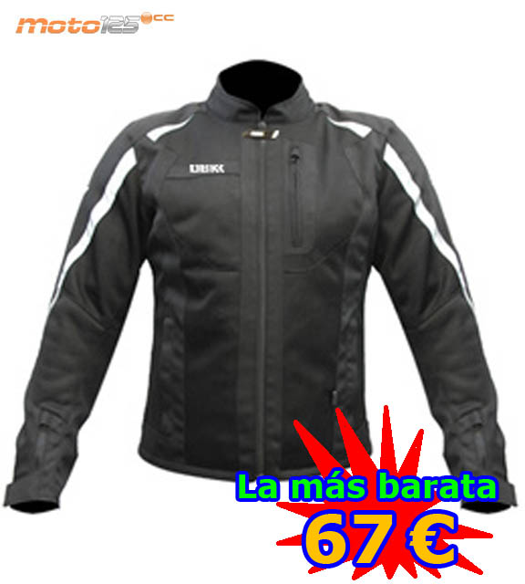 TJ-95782,50 euros. Cazadora de verano en cordura totalmente perforada. Protecciones desmontables homologadas en hombros, codos y espalda. Zonas elásticas en antebrazo. Incluye amplias zonas reflectantes y forro membrana interior impermeable desmontable, transpirable y cortavientos. Disponible en negro y gris-negro y tallas S, L y 3XL. | ***TJ-962 (Mujer)*67,00 euros.Sencilla y económica cazadora de verano totalmente perforada. Protecciones desmontables homologadas en hombros, codos y espalda. Ajustes en mangas y cintura. Zonas elásticas en antebrazo. Bolsillo lateral izquierdo a la altura del pecho. Color negro con franjas reflectantes. Tallas M, S y XS. |