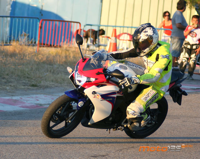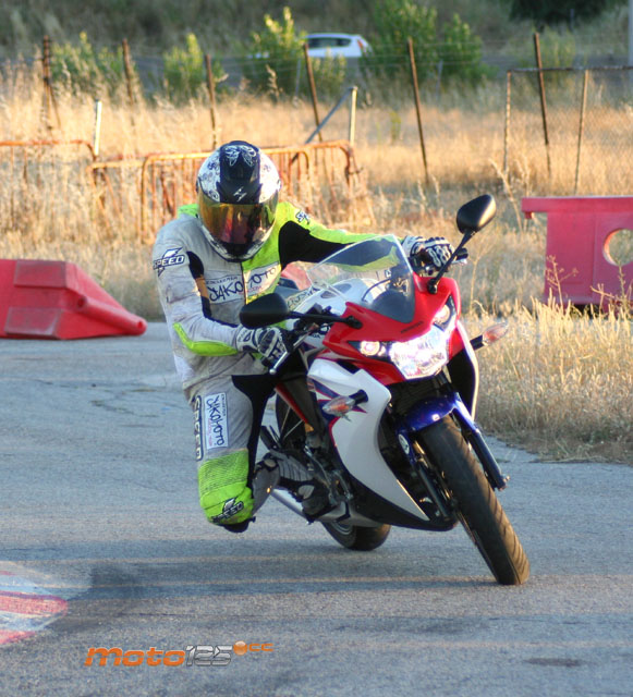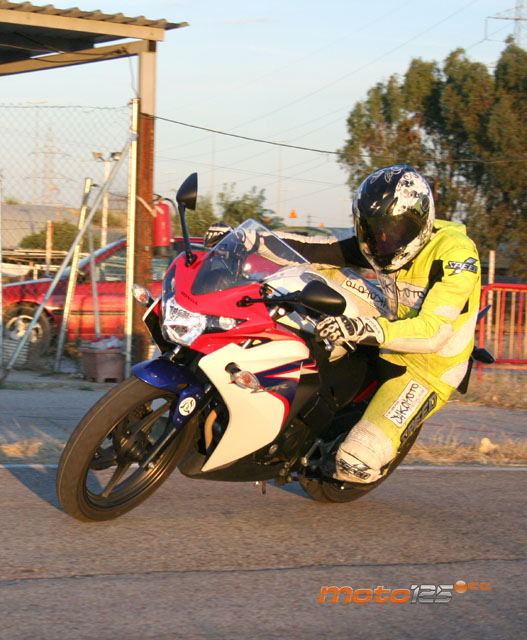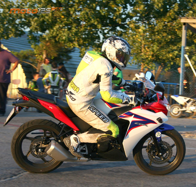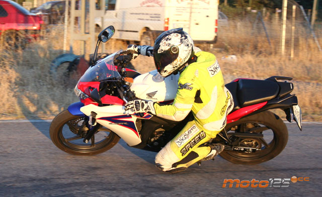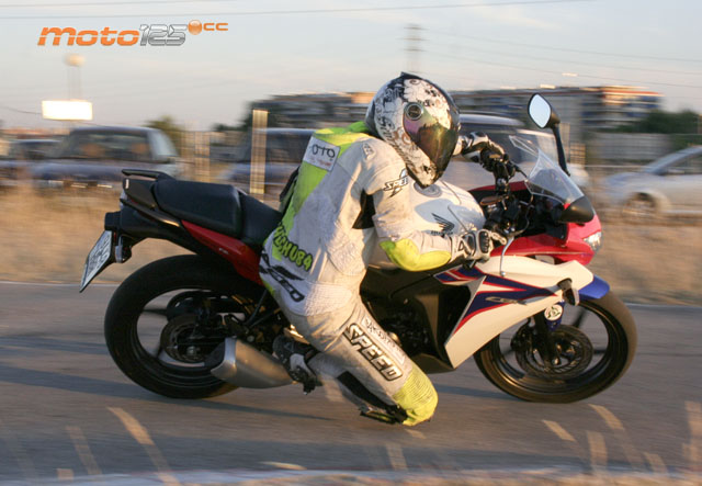 Los más altos no podrán poner ningún pero en la nueva posición de conducción que ofrece la CBR 125 R: amplia y en la que todos los mandos caen bien. Tan bien, que nos olvidamos de las incomodidades características de una moto deportiva: estriberas muy retrasadas y puesto de conducción cargando peso sobre el manillar para hacer más precisa la dirección, aunque esto conlleve un insoportable dolor de muñecas pasada media hora de conducción. Nada de eso, la CBR 125 R es casi una sport turismo en la que puedes conducir con los pies adelantados y la espalda erguida, aunque si quieres “hacer tiempos” te podrás agachar sobre el depósito y esconderte detrás del carenado para mejorar la aerodinámica. Es un estilo menos extremista y más parecido al de una CBR F, con la que precisamente se asemeja exteriormente.