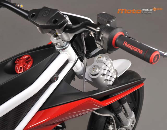 Este ejercicio de estilo arroja en la báscula tan solo 80 kilos de peso, a pesar de que el material empleado en el miniesqueleto tubular del bastidor sea el acero a través de tubos de sección oval. Debajo de este minibastidor, se encuentran unas tapas laterales en rojo que delatan claramente que lleva la marca Husqvarna. ![]() |