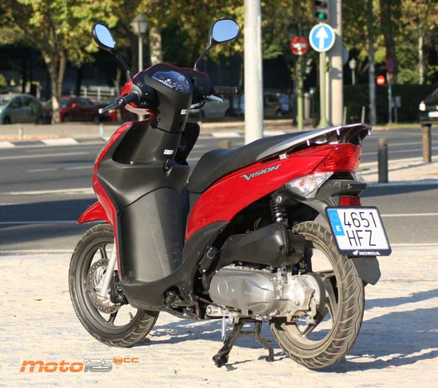 Está claro que a Honda no le basta con tener un número 1 en ventas como es el PCX. Ahora busca satisfacer otros gustos del mercado con esta Vision y, por qué no decirlo, otros bolsillos, ya que esta alternativa prescinde de algunos “gadgets” de la sofisticación tecnológica que hace gala el superventas (refrigeración líquida, sistema de parada del motor a ralentí, alternador-motor de arranque todo en uno, etc), situando el precio justo por debajo de la barrera psicológica de los 2.000 euros y haciéndose cargo de los gastos del seguro durante el primer año.