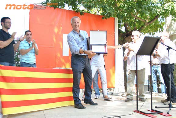 Acto seguido, los integrantes del desfile volvieron al recinto de la concentración, donde se unieron al resto de asistentes, y disfrutaron de un magnifico aperitivo. Antes del aperitivo se entregaron los premios a los ganadores de los concursos y se obsequió al Sr. Andreu Rabasa i Negre con una placa conmemorativa como reconocimiento de toda una vida de esfuerzo y dedicación a la marca Derbi. También se realizó una entrega de medallas a personalidades que han sido importantes para Derbi y para la Asociación SomosDerbi.