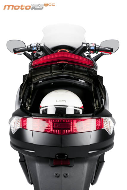 Al espacio de carga del Stream se accede por el portón trasero y abatiendo el asiento. Se prevé mucho espacio de carga, incluso para dos cascos integrales lo que le convertiría en el scooter eléctrico con mayor capacidad del mercado. | |