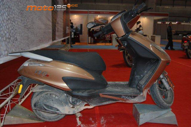 Entre bastidores descubrimos este nuevo scooter de Piaggio. De acuerdo que necesitaba un lavado. Se trata del Vivo 125. De momento está orientado al mercado oriental. Usa motor Leader de carburación y ruedas de 10 pulgadas. | Presentación con coreografía en el escenario del stand de Yamaha para dar a conocer una nueva versión de la YBR 125, en este caso se trata de una “Low Cost” un poco pelada de accesorios. |