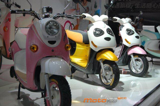 Las marcas chinas tenían fama de copiar diseños occidentales. Pues ahora se copian entre ellos. Fíjate en esta Lifan, un auténtico clon de la Keeway RKV que pasó por Moto125.cc y que allí lleva la etiqueta de QJ. | Interesante scooter eléctrico de la marca china Yadea. Fíjate en su frontal y adivinarás enseguida su denominación comercial, la misma de un mamífero autóctono del país. Lo pone en chino, pero nos lo tradujeron como Panda. |
