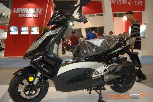 También se occidentalizan los diseños. Esta trail de Loncin con inspiración crossística podría encajar bastante bien en el mercado europeo. Su propulsor es muy similar al que emplea nuestra Rieju Tango. | Exclusiva en el stand del grupo Quianjang: el scooter deportivo Benelli H@cker 125/150. En principio estaba previsto que llevara la marca Keeway pero, como se ve, le sienta mejor la firma italiana, que acaba de cumplir 100 años. |