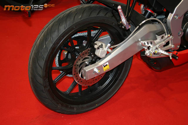 Y aunque ya está a la venta desde hace unos mese, la Aprilia RSV4 125 acaparó la atención de los usuarios de la convalidación y jóvenes de 16 años. Se trata de una fiel réplica del modelo empleado por Max Biaggi en SBK pero a escala 1:125. A destacar su bastidor de dos valvas en fundición de aluminio, basculante asimétrico en el mismo material con forma de banana por el lado derecho para salvar la salida de su corto escape, y motor monocilíndrico 4T refrigerado por agua con culata 4 válvulas y doble árbol de levas con alimentación por inyección.