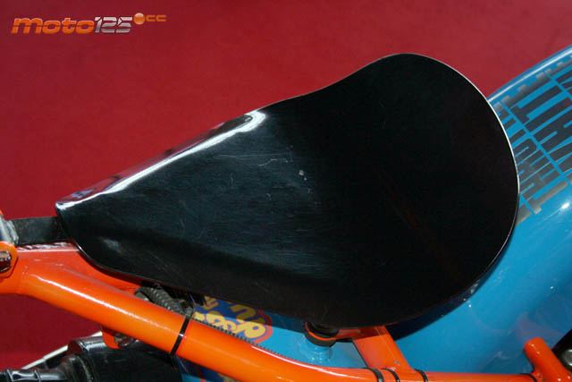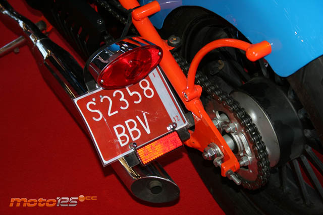 Detrás de esta Leonart Bobber de chasis rígido personalizada está la mano y el arte del mismísimo Ferry Clot, un artesano de la customización que ha ganado en diversos certámenes. El proceso de transformación afecta al colorido en unos llamativos color naranja para los tubos del bastidor y azul celeste para depósito, guardabarros y el “bidón” bajo el asiento que encierra los componentes eléctricos. Dispone de portamatrículas en el lateral izquierdo del basculante y para que sea “para hombres” se le ha desprovisto de cualquier acolchado a la base del asiento que mantiene un miniamortuguador bajo su base.