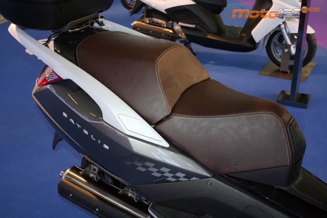 Una nueva versión cromática a añadir en la familia Satelis: el Peugeot Satelis GTI. Se trata del modelo conocido con una exclusiva decoración en gris y quilla en plata, con parabrisas “recortado” en ahumado, llantas con cerco cromado, asiento con tapizado en símil cuero y decorada con la bandera a cuadros en los laterales. Como promoción para el Salón se ofrecía con baúl trasero abatible (para acceder al portón-asiento trasero) a un precio muy especial.