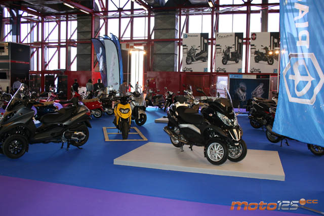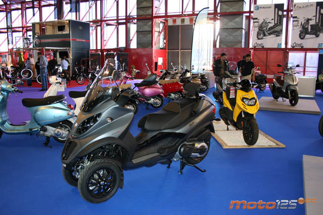 Tampoco pudimos ver las novedades anunciados en Milán de las tres marcas principales del grupo Piaggio y que empezarán a comercializarse desde el presente mes de abril. La representación del grupo corrió a cargo de Unimoto que apostaba fuerte por la gama de vehículos de tres ruedas MP3 en sus variantes Yourban y Touring, ofreciendo la posibilidad de realizar una toma de contacto en su pista de pruebas particular, e incluso organizando el sábado la primera concentración nacional de MP3.
