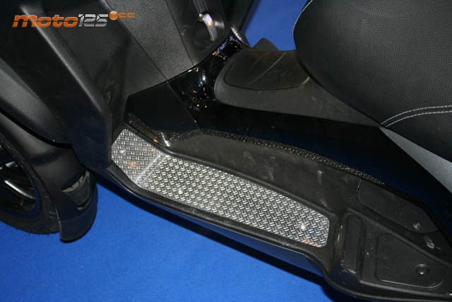 A falta de novedades absolutas, los dos MP3 500 LT con 40 CV de potencia que se pueden conducir con el carnet de coche de reciente comercialización, centraban la atención del visitante. El Piaggio MP3 LT Touring Business aporta unos acabados muy exquisitos combinando el negro brillo con molduras en color aluminio así como las llantas.