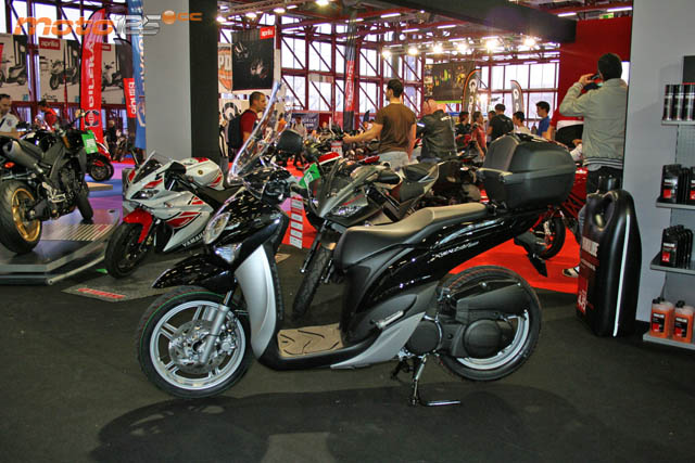 Lo representaba en el Salón su concesionario PDK. No pudieron llegar a tiempo las novedades 2012 en 125 cc aunque sí se dio a conocer la nueva Aprilia SRV 850, el megascooter de mayor cilindrada fabricado en serie.