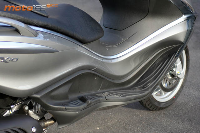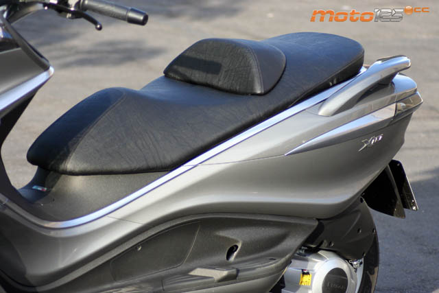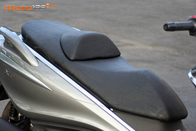 En su puesto, se puede mantener hasta cierta distancia de separación entre conductor y pasajero por la generosidad de la longitud. En cualquier caso hay amplitud a lo largo y a lo ancho, disponiendo de asideras independientes para agarrarse, y unas estriberas fijas para apoyar los pies. Nuestros habituales lectores saben que este tipo de estriberas no reciben buenas críticas de nuestra parte porque sobresalen menos que las desplegables y obligan a arquear para dentro las piernas; pues bien, este X10 es la excepción que confirma la regla.