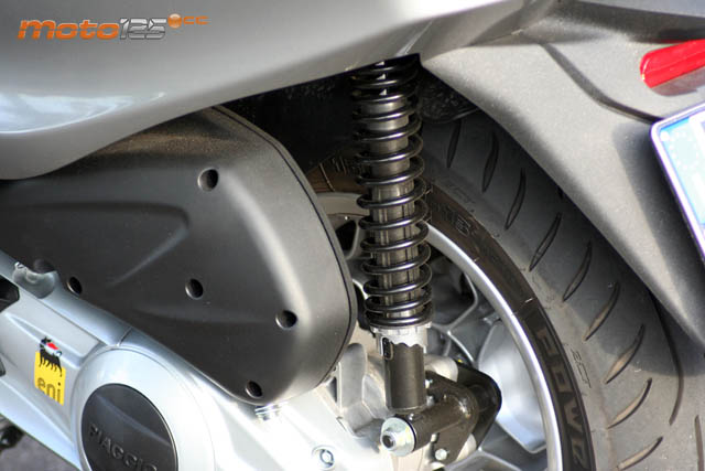 Si bien la opción del ABS está disponible en muy pocos modelos de 125 cc (cuatro para ser precisos), lo que sí que es novedad total es el control de tracción. Posiblemente las cilindradas de 350 y 500, en las que también se ofrece el X10, será muy bien valorado, sobre todo en firmes resbaladizos (hielo o tierra suelta). Pero en este 125 cc al que le cuesta iniciar la marcha por el lastre de los 202 kilos, va a ser que no. Ahora bien, contrariamente a lo que te puedas imaginar, el coste de este argumento de ventas es muy barato ya que tan solo supone añadir unas líneas más de software en la ECU que controla el X10. Me explico: la ECU recibe información en tiempo real de las velocidades de cada rueda a través de sensores de rueda fónica que se utilizan para evitar el bloqueo de cada rueda al frenar. Pero al acelerar esa información no se utilizaba, hasta que en Piaggio se les ha ocurrido utilizarla comprobando si la velocidad de la rueda posterior es mayor que la anterior. Esto es un caso claro de que la rueda posterior está patinando, y para evitarlo se le ordena a la ECU que retrase el avance de encendido haciendo que el motor ratee y reduzca su velocidad. Nada más: no hay ningún mecanismo adicional como embragues antirrebote o dispositivos especiales empleados en las motos. Así que, si en Yamaha el añadido del ABS cuesta en el X-Max 500 euros de más, la misma cantidad entre un Satelis Premium y Urban de Peugeot de última generación, y en Kymco baja un poco hasta los 450 euros del SuperDink, podemos deducir que el sobreprecio del ABS con el “añadido virtual” del ASR no es precisamente un regalo en este Piaggio X10 ya que se pasa de los 4.300 euros del Elegance a los 5.300 de este Executive (el más caro de los scooters del mercado de 125: 1.000 euros que dan mucho que pensar, y sobre todo en estos tiempos que estamos pasando.