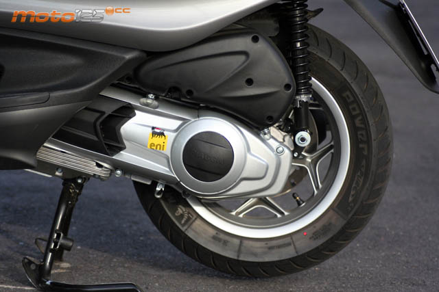 El que sí que acusa el sobrepeso del X10 es el motor. Se trata de la última generación de Pîaggio con culata de cuatro válvulas y refrigeración líquida, que cuenta con inyección y bomba de agua eléctrica. Las aceleraciones desde parado no son brillantes pero sí bastante dignas, siempre y cuando conduzcamos sin compañía. Ahora bien, saliendo por carretera abierta, el motor no puede dar más de sí registrando una velocidad máxima real en llano de poco más de 107 km/h que se corresponden con 116 de velocímetro. Eso sí, con pendiente a favor verás hasta los 125 km/h (quedarán registrados en la memoria de las funciones de la pantalla LCD) limitados por un corte de encendido en 9.750 vueltas.