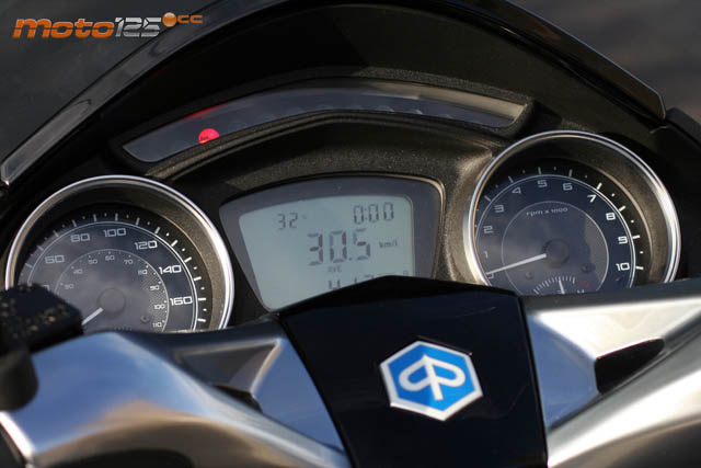 Pero en lo que el desaparecido X9 dejó el listón muy alto y sin que ningún modelo posterior lo superara era en instrumentación: cuatro esferas analógicas detrás del parabrisas y una pantalla LCD con mucha información en el centro del manillar rodeado todo ello por una gran cantidad de testigos luminosos. Una ostentosidad realmente exagerada ya que mucha de la información era inservible o estaba repetida.Ni siquiera el X10 consigue empatar en cantidad de información a su predecesor pero sí en calidad: hay información nueva como la de consumo instantáneo/medio o incluso autonomía restante no contemplada en el X9, ni siquiera en ningún otro scooter de cualquier cilindrada. Es una información muy empleada en el mundo automovilístico y que sin lugar a dudas servirá en este 125 cc para hacer un guiño a los convalidados.