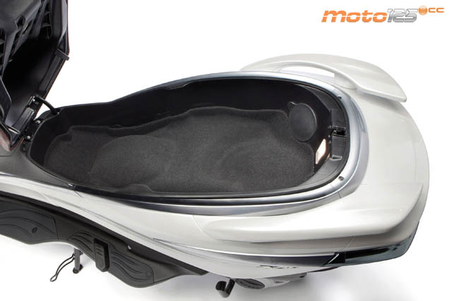 Récord absoluto de capacidad bajo el asiento del X10: nada menos que 52 litros que dan para mucho más que dos cascos integrales, como por ejemplo otras cosas de menor tamaño entre ellos. Más que un maletero es una bañera.