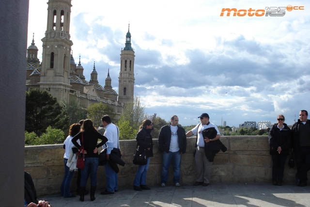 Así pues, los 40 participantes nos lo encontramos todo a la perfección, y en eso tuvo mucho que ver Fernando “Kokardi” y su mujer Eva que se ocuparon de realizar las gestiones con el Hotel Fernando II de Aragón (4 estrellas con un precio muy especial para ForoKymco), con el distribuidor en Zaragoza de Kymco, MotoMundi, que puso su granito de arena aportando asistencia técnica (que afortunadamente no hizo falta) y algún regalo para la entrega de premios de después de la cena del sábado. También colaboraron, como ya es habitual en todas las “kedadas” del ForoKymco, el Taller TAD Motor de Madrid (regentado por Eduardo y Alejandro) en la calle Bascones que no solo ofrecieron asistencia en viaje o traslado de la moto averiada a Madrid (tampoco hizo falta) sino que también se hicieron cargo de confeccionar la camiseta oficial de la Concentración además de aportar regalos para todos los asistentes. No hay que olvidar los preparativos que se hicieron desde Madrid por Enrique “Kiki”, su mujer Paloma, y Federico “Fededb” y, organizando el convoy valenciano, José “Matador-Che” y su mujer Carmen con la obligada pirotecnia.