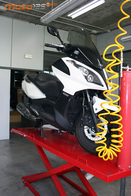 Queremos agradecer la ayuda facilitada para la realización de esta prueba a Kymco Moto España al cedernos sus instalaciones de talleres y herramientas. Así mismo, agradecemos también a José María Sanjuán y Jaime Monteliú que colaboraron en las mediciones y nos solucionaron algunas dudas.
