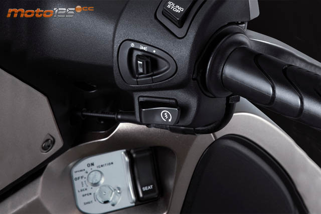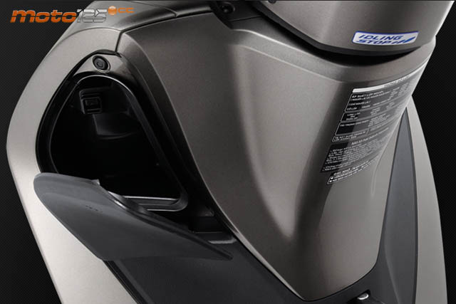 Más detalles. El mayor tamaño se traduce en más espacio y habitabilidad. Incluso el depósito de gasolina tiene más capacidad, que con el importante ahorro en el consumo se tiene que traducir en una muy superior autonomía. Sigue cabiendo el casco jet especial de Honda bajo el asiento y la apertura del asiento se realiza como en el PCX pulsando un botón que se encuentra junta a la cerradura de contacto, que por cierto también se estrena con un sistema de obturación para la cerradura.