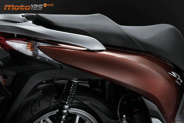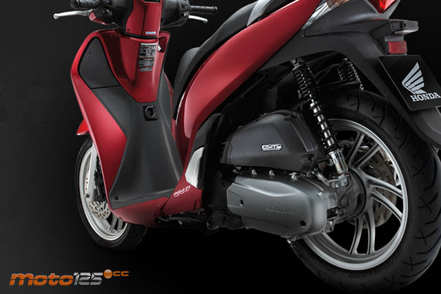 Otro cambio muy importante es el motor. Se abandona la mecánica que siempre ha equipado el Scoopy desde que se estrenó en 125 cc (y que también llevan/llevaron el @, Dylan, Passion, Pantheon y S-Wing) y que evoluciónó con la inyección e incluso una versión Stop&Go que no cuajó demasiado, y nos llega ahora con la mecánica del nuevo PCX 125 con sistema eSP (enhanced Smart Power) y de la que ya nos explayamos aquí. Su potencia se reduce de 13,7 CV a 9.000 rpm hasta los 11,8 a 8.500, quedando muy parecidas las cifras de par motor: 11,5 Nm antes y ahora 11,2. Pero esto lo compensa con dos detalles importantes: una reducción de consumo del 25% (ojo, que cada vez está más cara la gasolina) declarados respecto al Scoopy SH conocido, y una importante reducción de las fricciones, con lo cual no se pierde tanta potencia desde el cigüeñal a la rueda posterior. Como en el PCX, el nuevo Scoopy contará con el sistema de Idle Stop (parada a ralentí), que cala el motor cuando está en marcha más de dos segundos a ralentí y lo vuelve a poner en marcha inmediatamente cuando detecta que el conductor ha girado lo mínimo el puño del acelerador.