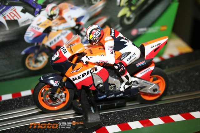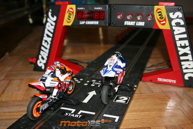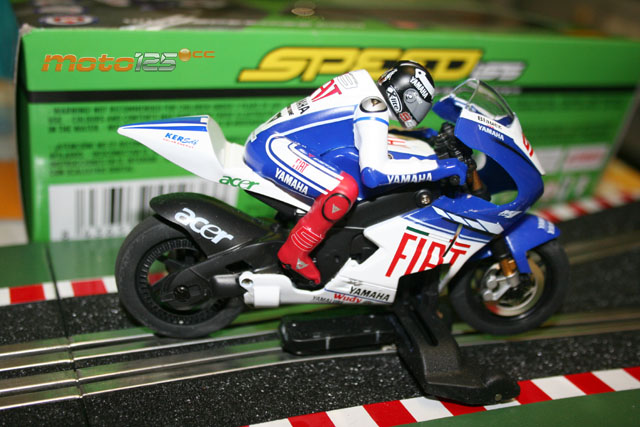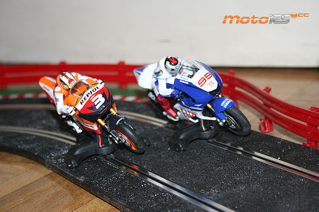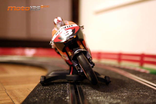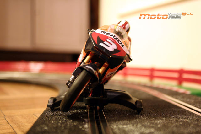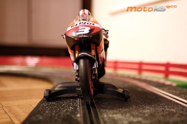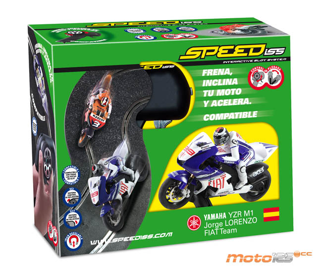 Pero también ha habido muchos intentos en adaptar las competiciones de motociclismo a estas pistas de “slot”. No era fácil, por el propio concepto de la moto: dos ruedas, con la trasera o tractora pisando el mismo “slot” metálico y resbaladizo, y con una altura considerable que afectaba a la estabilidad en las curvas. Los intentos hasta el momento habían fracasado… hasta que llegó el sistema ISS, Interactive Slot System. Se trata de una tecnología digital aplicada a las pistas analógicas de toda la vida. Es una patente española iniciada por la marca Bycmo (especializada en modelos RC) y que ahora recoge la firma Speed Entertainment, ocupándose Spaan (conocidos por sus accesorios custom) de la distribución.