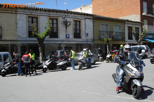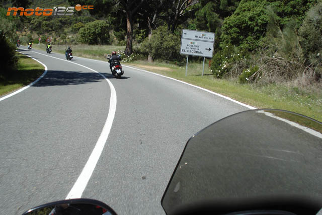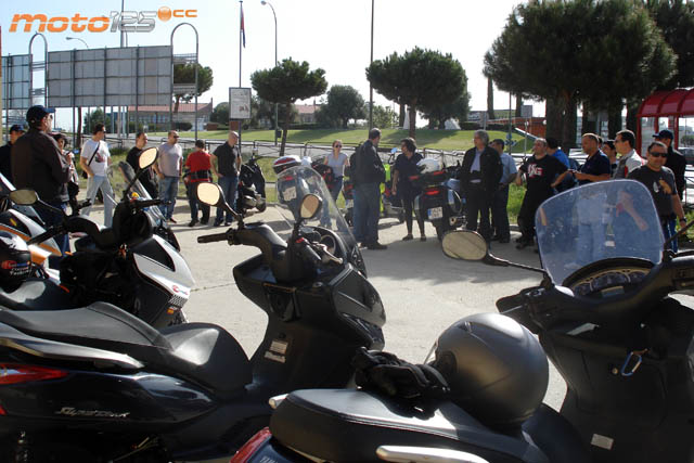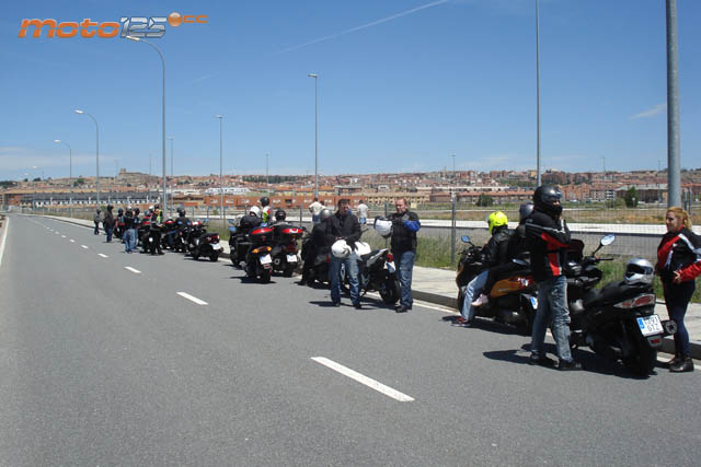 El éxito de la I Concentración Nacional en Zaragoza no les ha hecho dormirse en los laureles y cuando todos lo teníamos reciente, nos han convocado de nuevo a Ávila. Lógicamente el grueso principal de los participantes de esta ruta procede de Madrid, pero también ha servido para conocer a otros foreros de Salamanca y Valladolid. En total nos juntamos nada menos que 40 participantes con mayoría de 125 cc: 21 Kymco SuperDink 125i y una Hyosung GT-R 125. Una de las primeras, la de Moto125.cc y con dos personas encima. Está claro que no hay que tener complejos por cilindrada.Incluso hubo algunas 125 recién estrenadas conducidas por gente que hasta el momento solo habían llevado un coche.