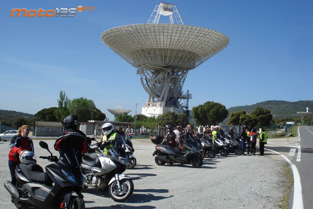 Y no se va rápido, según el habitual parte GPS facilitado por José María JMLF, la velocidad máxima alcanzada fue de 118 km/h con una velocidad media de 70 km/h. Para los que salimos de Madrid, recorrimos unos 300 km que se hacen sin problemas con un depósito lleno. El punto de encuentro oficial para la provincia de Madrid fue la Plaza de Toros de Móstoles desde donde se enfiló hacia la M-501 evitando en lo posible las autopistas y autovías para no forzar los motores y poder disfrutar mejor del paisaje. Nos apartamos de la Autovía de los Pantanos en Quijorna y desde allí continuamos a Colmenar del Arroyo con parada para fotos en la estación de satélites de la NASA-INTA. La ruta continuaba por Cebreros para llegar al mediodía a El Barraco, punto de encuentro con los convoyes procedentes de Salamanca y Valladolid, y ya a tiro de piedra de la capital avulense.