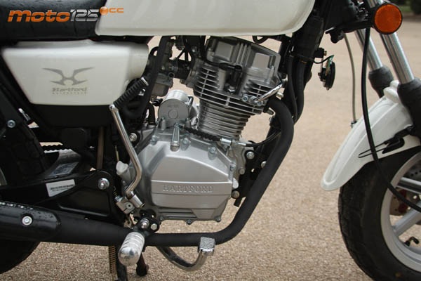De la propulsión se ocupa un monocilíndrico de dos válvulas, basado en el Honda CG 125, con distribución por varillas (menos mantenimiento, al no ser necesario tensar la cadena de distribución) y fabricado por la propia Hartford.