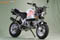 Cuenta con caballete lateral y central. Las estriberas del conductor carecen de bisagra y van fijas al bastidor. Las del pasajero, sin embargo, sí. | Instrumentación paupérrima: lo que ves. El bloqueo de la dirección no está en el contacto, sino en otra cerradura –con la misma llave- en la tija inferior. | El motor cuenta con arranque eléctrico y a pedal. La caja de herramientas se encuentra completamente desprotegida sobre el eje del basculante. |