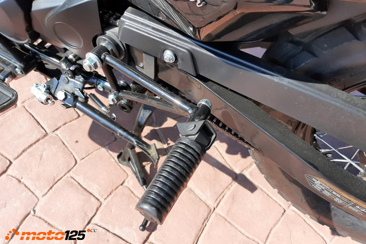 En lo que respecta a los pies en marcha, las estriberas tipo plataforma de la Rockster te permiten relajarte, aunque para hacer uso del pedal de freno tendrás que despegar el pie derecho. En la Rockster Flat, sus estriberas cilíndricas de goma te permiten tener a tu alcance el pedal de freno sin levantar el pie, aunque se hace más notable la fatiga por mantener los pies más alejados por efecto de la gravedad al llevar las piernas estiradas hacia delante. Si inclinas demasiado, llegarás a rozar cualquiera de las estriberas con el suelo.
