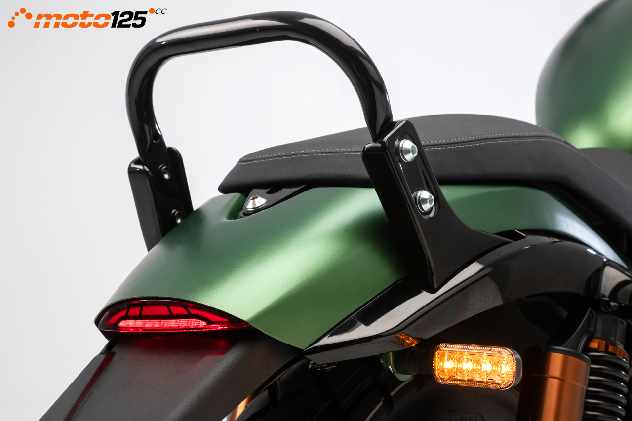 La Rockster se reconoce de inmediato por una decoración más elegante, respaldo acolchado para el pasajero, estriberas de plataforma, manillar tipo “cuernos de vaca”, y un asiento con faldones laterales más envolventes. En cuanto a colores, la Rockster se sigue ofreciendo en tonos brillantes rojo y negro, a los que se une para esta edición Evo un elegante Gilver achampanado que mezcla el dorado con plata. Su precio es de 2.499 €, el mismo de la versión 2023.