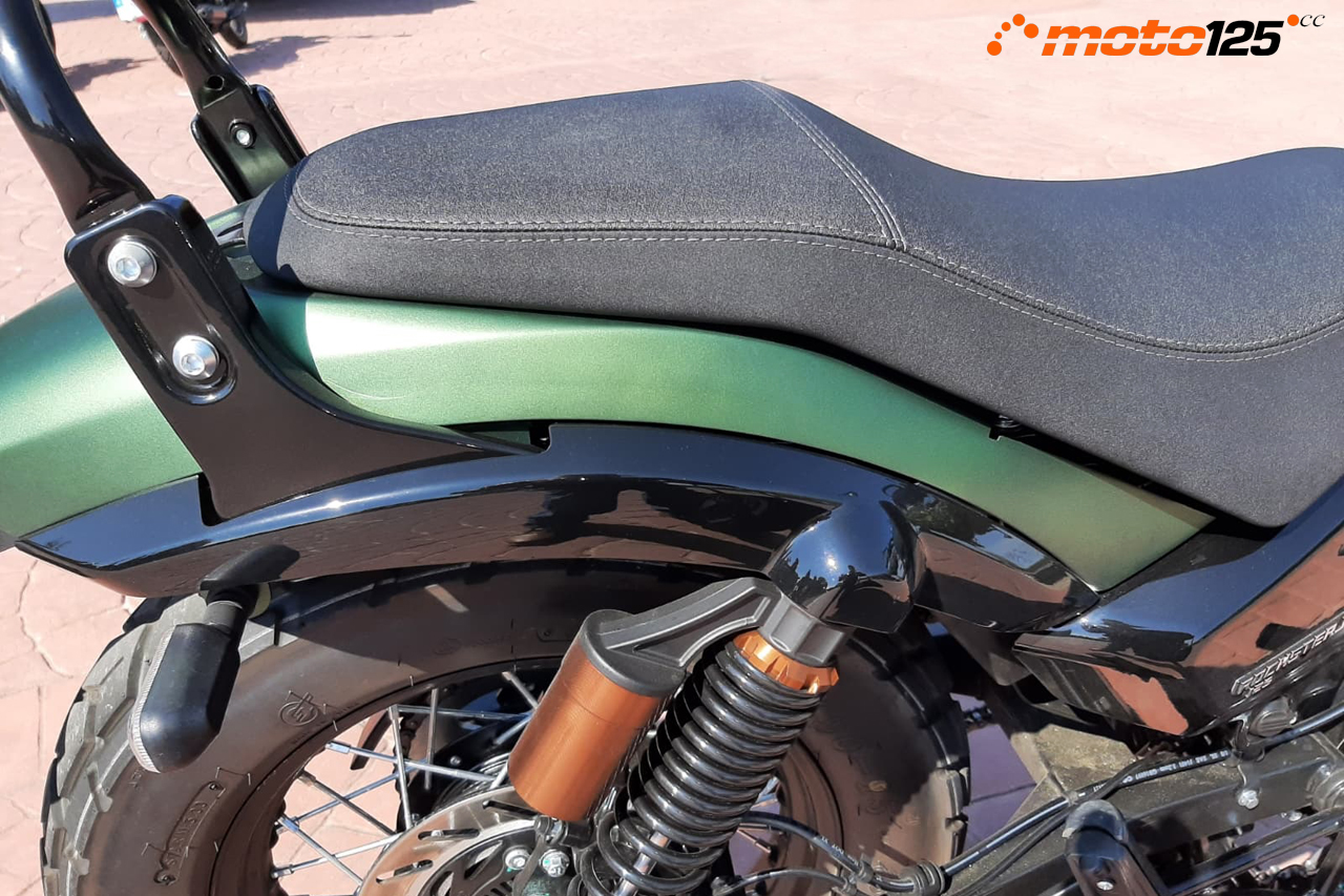 Con una altura de asiento de 730 mm y una cintura estrecha, no habrá problemas para que cualquier talla se acomode a gusto pudiendo llegar con ambas plantas de los pies al suelo. La posición de conducción la marcan principalmente los manillares; los ”cuernos de vaca” de la Rockster te hacen llevar la espalda erguida con las “manos arriba”, mientras que el plano de la Rockster Flat es 5 cm más bajo y también más estrecho haciendo que encorves ligeramente la espalda sin llegar a la radicalidad de una Café Racer.