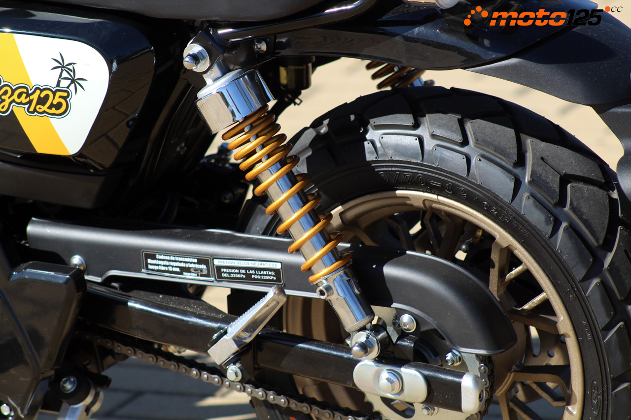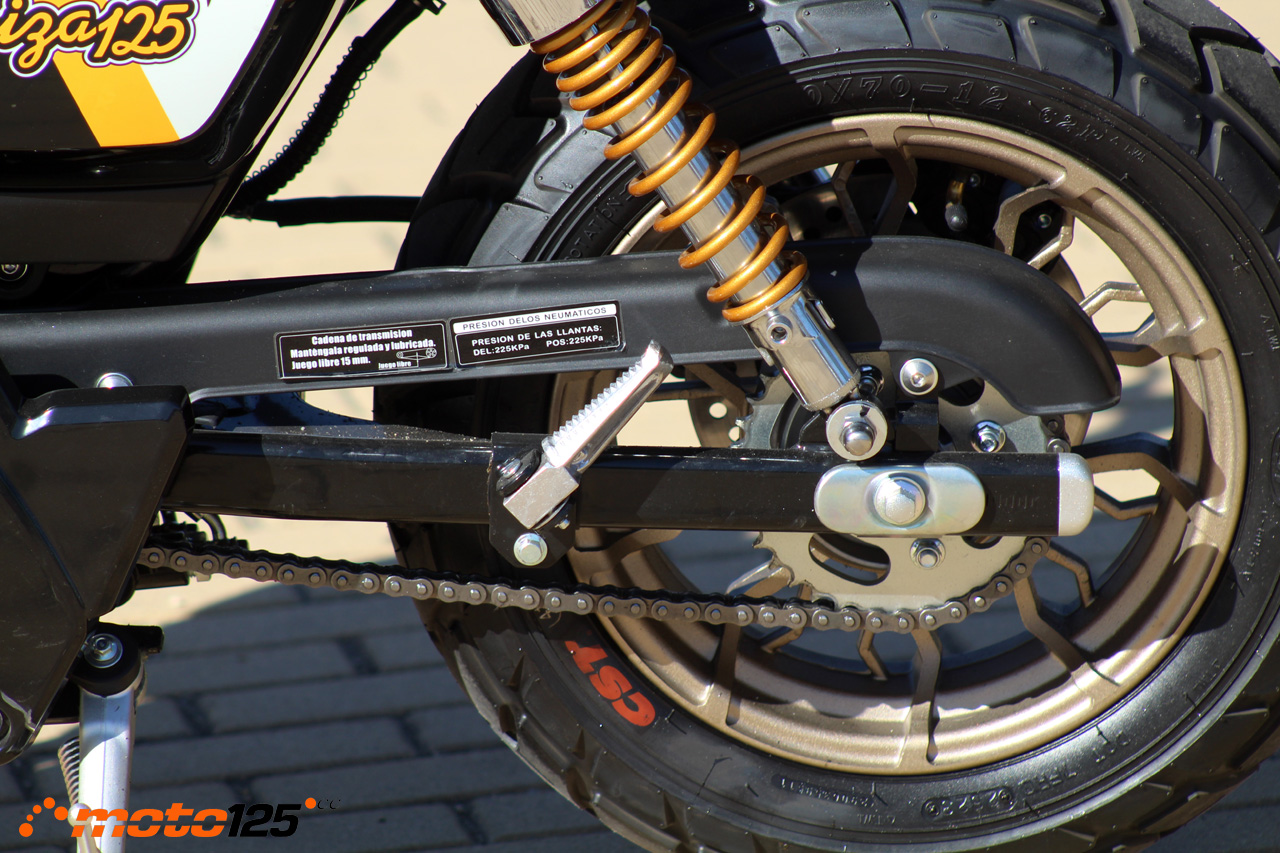El tamaño lo dice todo, porque es difícil concentrar todos los detalles de la Ibiza en una distancia entre ejes de tan sólo 1.170 mm: horquilla invertida, doble amortiguador trasero, depósito de combustible con capacidad para 9 litros, frenos de disco de funcionamiento combinado CBS en ambas ruedas de 12 pulgadas calzadas con neumáticos mixtos, toma USB, un comodísimo asiento a una altura muy asequible, alumbrado Full LED, escape elevado que resalta más esa vocación playera o “offroad” (sus llantas de aleación con múltiples palos, limitan bastante esa actitud fuera del asfalto), manetas ergonómicas regulables, freno de estacionamiento en la maneta del freno delantero y un robusto caballete lateral en fundición con un sistema de plegado que evita que se recoja accidentalmente en los aparcamientos.