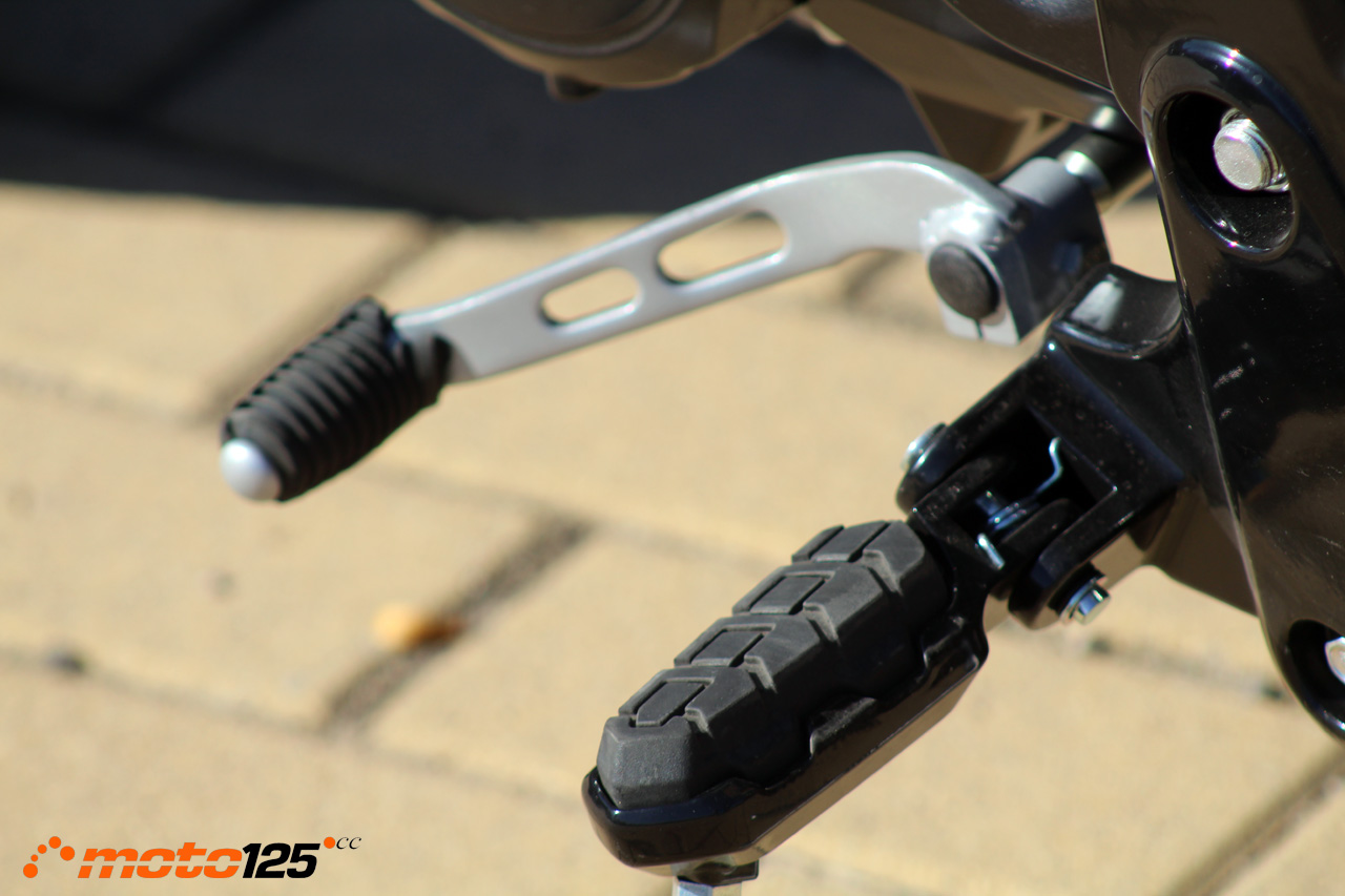 La pega principal la ponen sus estriberas demasiado bajas, con las que será fácil rozarlas con el suelo en las curvas o rotondas. Es más, cuidado con llevar la punta del pie izquierdo por debajo de la palanca de cambios porque lo que rozará será tu pie.