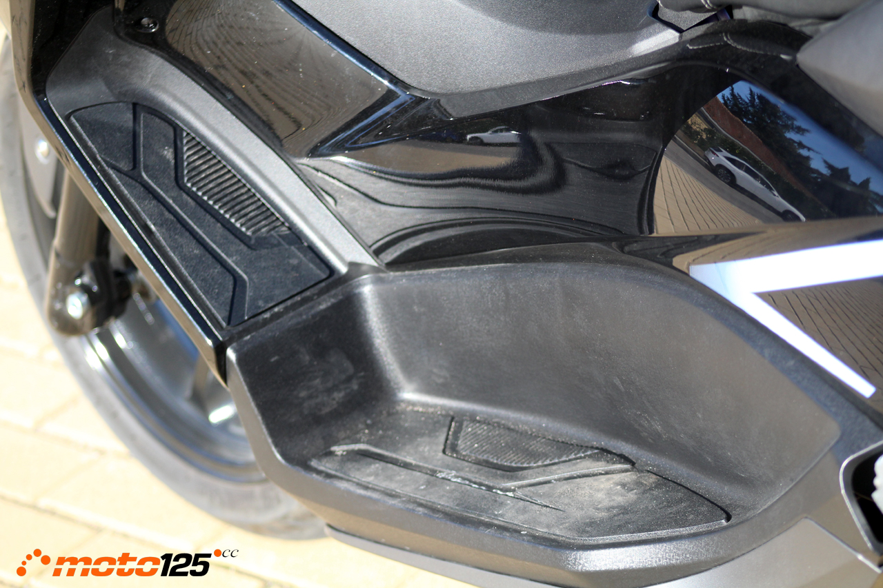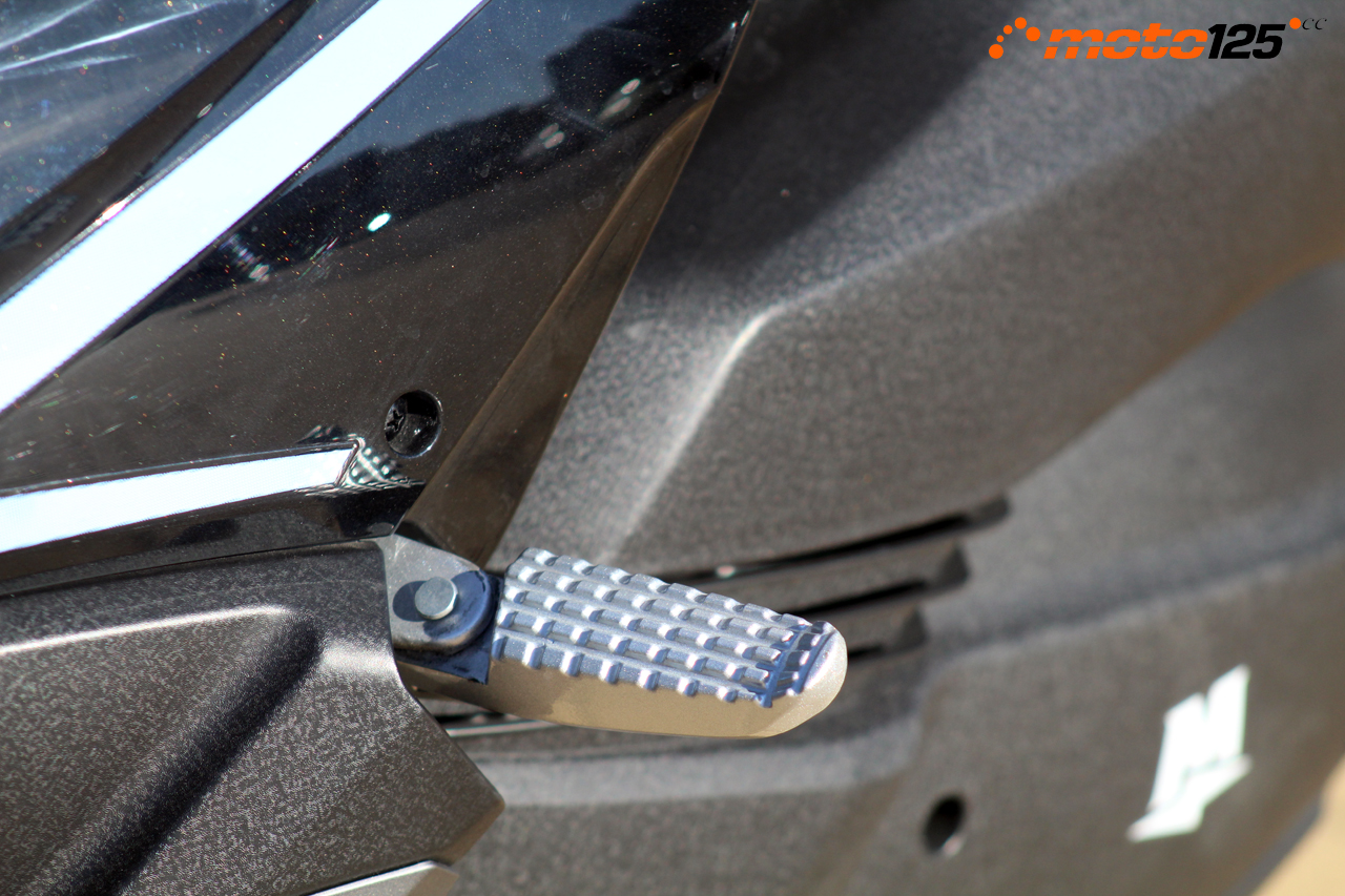 Aunque el asiento del pasajero es una continuación del piloto separado por el respaldo, lo cierto es que el mullido en la zona posterior es correcto y cómodo para el acompañante. Si ya estaba algo elevado el asiento del piloto, nuestro paquete puede necesitar utilizar una de la las estriberas desplegables para subirse mientras que el piloto mantiene el scooter vertical. En su puesto se cuenta con buenas vistas, unas sólidas asideras donde agarrarse y unas estriberas bien situadas.